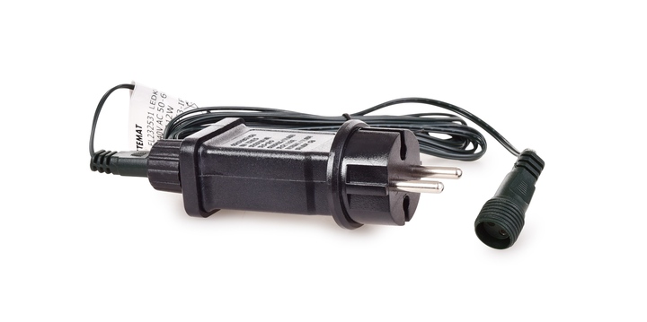 Síťový adaptér pro LED světelný déšť ICELINK s délkou kabelu 3 m. Umožňuje propojení až 6 světelných řetězů na jedno napájení. Vhodný pro venkovní i vnitřní použití, krytí IP44, příkon 12 W.