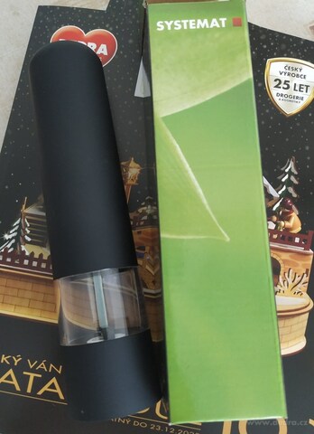 Elegantní elektrický mlýnek SYSTEMAT XXL na sůl, pepř a koření s LED osvětlením a nastavitelnou hrubostí mletí. Ergonomický soft-touch povrch, keramický mlecí mechanismus a jednoduché ovládání jedním tlačítkem. Na 4× AA baterie. Výška 22 cm.