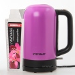 Celonerezová rychlovarná KOKONVICE s fialovým lakem z řady SYSTEMAT. Otočná základna má praktický prostor pro uložení přívodního kabelu o délce 75 cm.