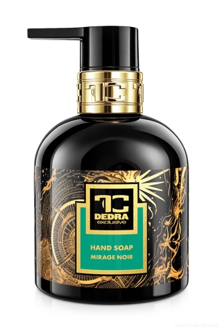 MIRAGE NOIR – luxusní tekuté mýdlo s glycerinem a Aloe vera. Jemně čistí, hydratuje a zanechává pokožku sametově hebkou. Bez SLS, SLES a parabenů. Smyslná vůně citrusů a levandule s hlubokými dřevitými akordy pačuli a vetiveru. Objem 320 ml.