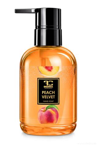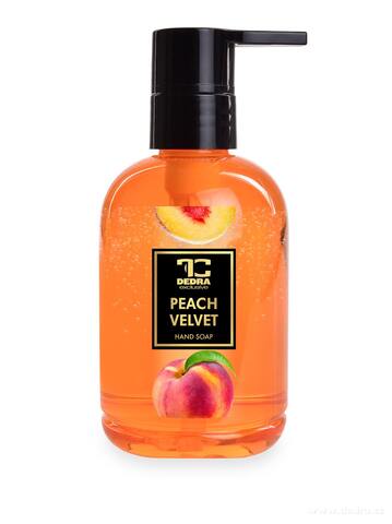 PEACH VELVET – přírodní tekuté mýdlo s glycerinem pro jemné mytí a hydrataci rukou. Bez SLS, SLES a parabenů. Šetrné k pokožce, chrání před vysoušením a zanechává ji hebkou. Balení 310 ml.