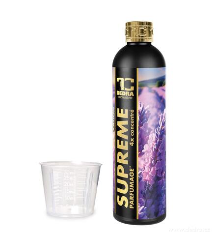 PARFUMAGE® SUPREME RELAXATION – 4× menší dávka, 4× větší účinek. Stačí jen 5–15 ml na praní a vaše prádlo získá intenzivní a dlouhotrvající vůni. Oživuje barvy, neutralizuje zbytky pracích prostředků a je šetrný k pokožce i pračce. Menší dávka – větší účinek, vhodné až do 95 °C.