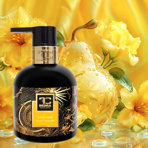 SAMETOVÁ HRUŠKA je klenotem naší exkluzivní kolekce tekutých mýdel, která spojuje špičkovou péči s unikátní parfemací. Hebká krémová konzistence obohacená o glycerin a Aloe vera Barbadensis promění každé mytí v luxusní rituál. Pokožka zůstává po použití sametově hebká, hydratovaná a vyživená, zatímco sofistikovaná vůně sladkých hrušek, šťavnatého melounu a květinových tónů růže a frézie přechází do hřejivých akordů pačuli, ambry a mošusu – pro zážitek, který přetrvá.