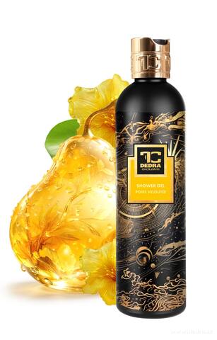 SAMETOVÁ HRUŠKA – luxusní sprchový gel z kolekce FC DEDRA exclusive s vůní sladké hrušky, růže a pačuli na hřejivém základu ambry a mošusu. S glycerinem a Aloe vera pro hedvábně jemnou pokožku. Bez SLS, SLES a parabenů.