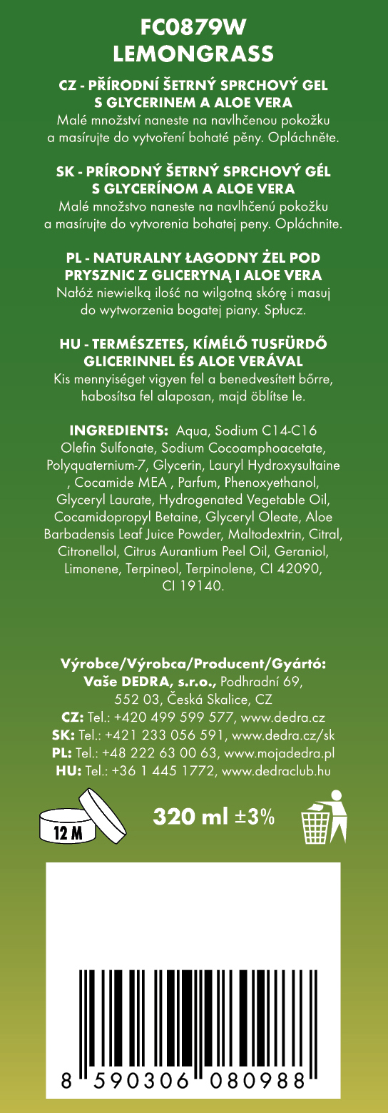 LEMONGRASS - energizující vůně plná svěžesti, lehkosti a exotického nádechu.S glycerinem a Aloe vera pro jemnou, hydratovanou pokožku. Bez SLS, SLES a parabenů.