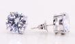 Náušnice se zirkonem, rhodiováno, průměr 1,1 cm, zavírání na puzetu (navléká se ze zadní části náušnice na tyčku (dřík) náušnice, přes malý kruhový výřez, tím je zajištěno její držení na náušnici)