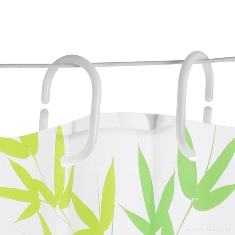 KOUPELNOVÝ ZÁVĚS s dekorativním potiskem. V horní části otvory pro kroužky na zavěšení.