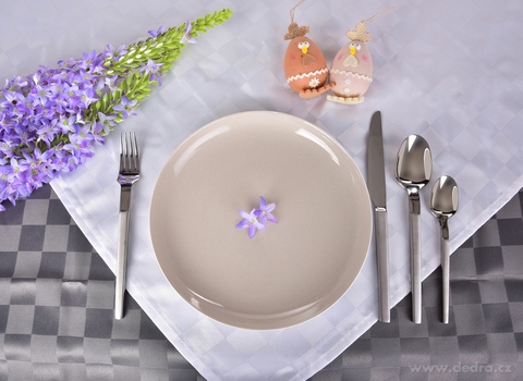 KÁRO ubrus s decentním žakárovým kostkovým motivem.