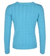 dámský svetr s provazovým copánkovým vzorem a pružným žebrováním kolem krku, rukávu a pasu.
