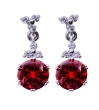 Náušnice se zirkony, barva rubínu, rhodiováno, délka 2 cm, zavírání na puzetu.