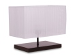 WOODER stolní lampa se skládaným textilním stínidlem a dřevěným podstavcem v mahagonové barvě.