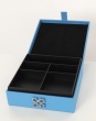 LUXUSNÍ A ORIGINÁLNÍ ŠPERKOVNICE PRO STYLOVÝ INTERIÉR. Tato kazeta s uzavíráním na sponu v přední části a potažená jemnou modrou ekokůží se stane jedinečným doplňkem tvého interiéru. Díky ní zíškáš originální a zárověň funkční prostor pro své poklady!