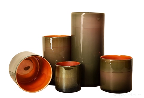 SKLENĚNÉ DEKORACE s kouřovým efektem v přírodní barvě s vnitřní oranžovou glazurou s nádechem perleti můžeš použít jako jedinečnou dekoraci na svíčky nebo aranžmá ze suchých či živých květin.