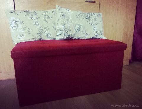 SEDACÍ BOXER skládací taburet s úložným prostorem. Látkový s polstrovaným víkem pro pohodlné sezení. Ve spodní části šusťákový potah pro lepší údržbu.