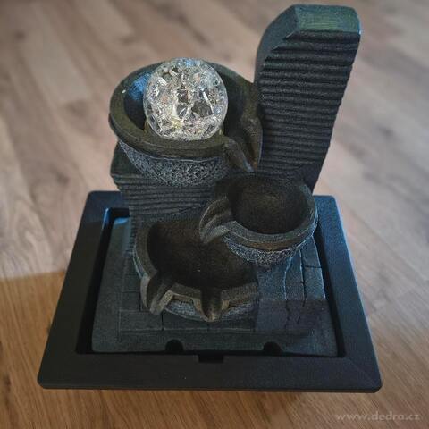Pokojová fontána ZEN s koulející se koulí a LED osvětlením. Výška 26 cm. Vytváří klidnou atmosféru pro relaxaci a meditaci. Kompaktní design s jemným šumem vody a světelným efektem.