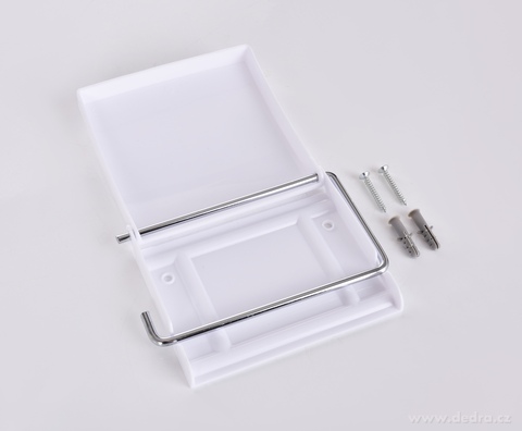 SPA nástěnný držák na toaletní papír v bílé barvě. Kov + plast, pevná montáž pomocí šroubů a hmoždinek (součást balení). Praktický a odolný doplněk pro každou toaletu.