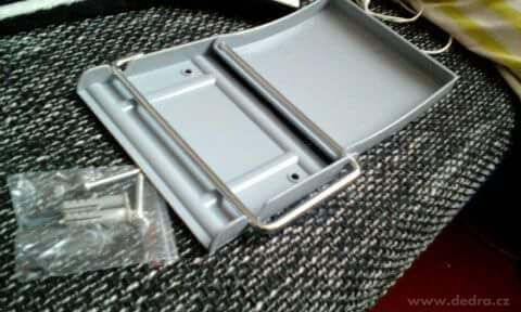 šrouby a dvě hmoždinky k přidělání na zeď.