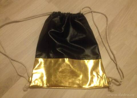 METALIC BAG pytel na záda, černo zlatý, s povrchem z ekokůže, ve spodní části s lesklou