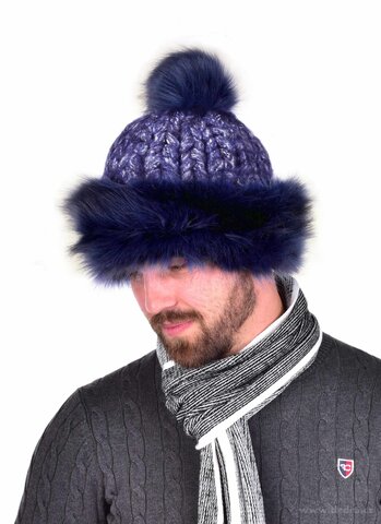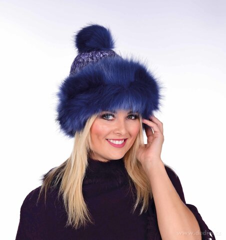 Hřejivá ručně pletená čepice s jemnou kožešinou po obvodu a velkou bambulí, uvnitř hebká lagoon podšívka.