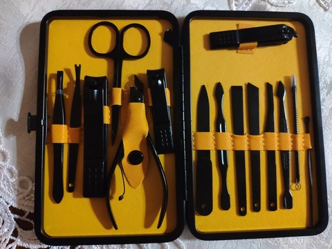 Luxusní manikúrní a pedikúrní sada BEAUTY v žluté etui s embosovaným logem FC ti poskytne kompletní péči o ruce, nohy i pleť. Obsahuje 16 precizně vyrobených nástrojů z kartáčované oceli, které zvládnou vše od běžné manikúry až po detailní kosmetické úpravy.