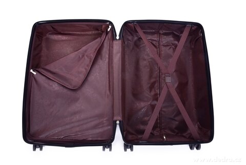 • uvnitř kufrů předělující membrána na zip a popruhy na zajištění šatstva.