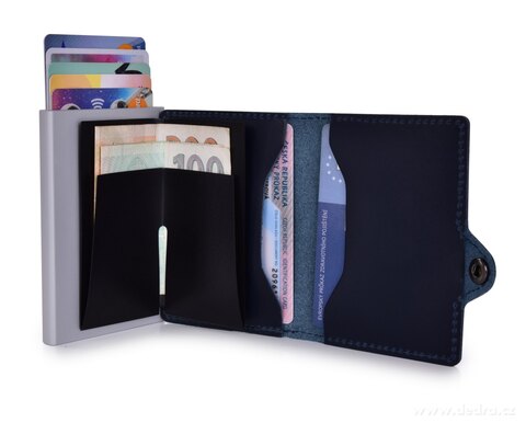 Zajisti si bezpečně své platební karty a zabraň jejich zneužití! Inovativní kožená peněženka s ochranným pouzdrem se speciální konstrukcí slitiny hliníku a titanu ochrání tvé karty před ohýbáním, lámáním a hlavně nežádoucí bezkontaktní transakcí (tj. před pirátským načtením RFID čipu). Např. koncerty, MHD, fronty, letiště, nádraží, festivaly...