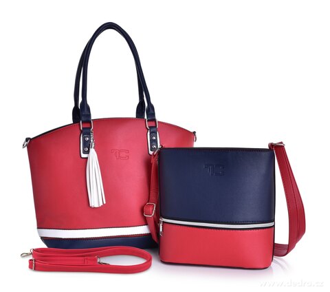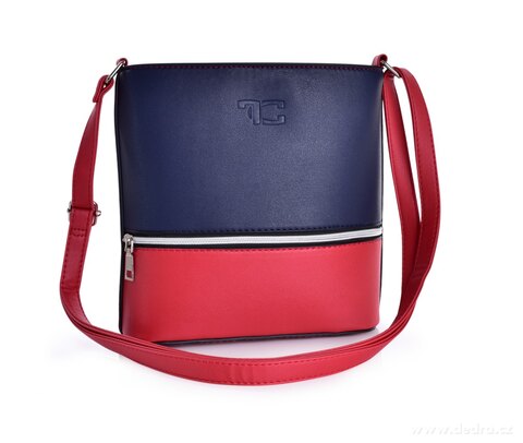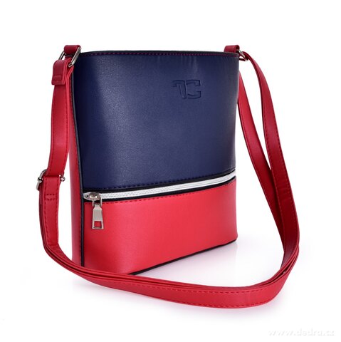 INFINITY CROSSBODY kabelka z ekokůže v módní červeno bílé barvě s uzavíráním na zip. S embosovaným logem FC.