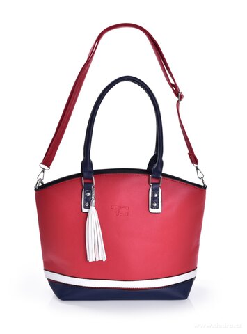 TRINITY kabelka z ekokůže v módní červeno modré kombinaci s efektním bílým lemováním. Barvy kabelky odkazují na trikoloru. Kabelka byla navržena v naší designové kanceláři v Česku.
