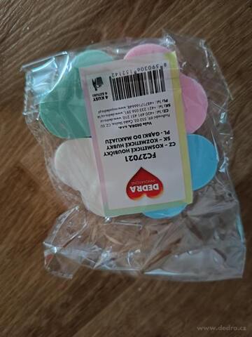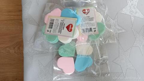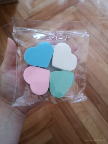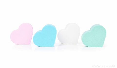 4 ks kosmetické houbičky na make-up ve tvaru srdce, barevné, z jemného syntetického latexu.