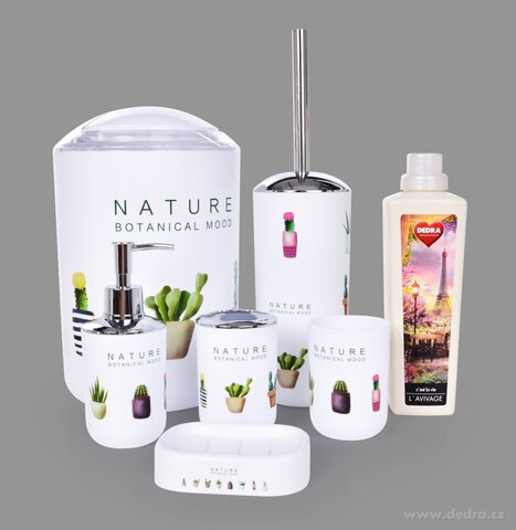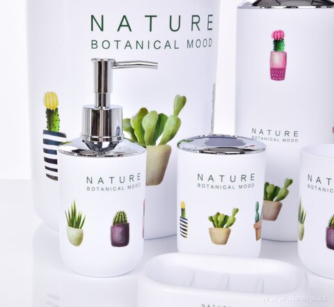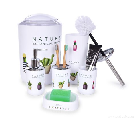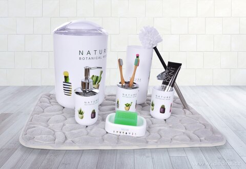 6 dílný koupelnový set kaktus, z odolného plastu, ozdobné části upraveny finišem v barvě stříbrného kovu s vysokým leskem.