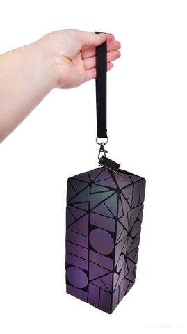 Ve tmě se při dopadu světla rozsvítí reflexní povrch. Designové etue/pouzdro s geometrickými vzory, díky kterému na každé párty či oslavě zaručeně zazáříš!