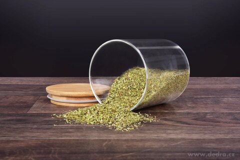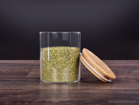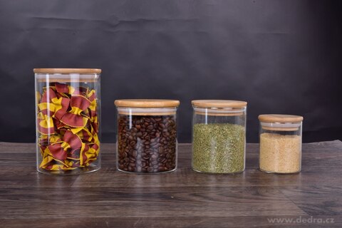 SKLENĚNÉ DÓZY z odolného borosilikátového skla s bambusovým víkem se budou skvěle vyjímat na poličce v kuchyni.