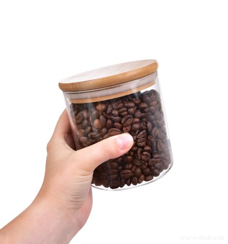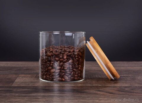 SKLENĚNÉ DÓZY z odolného borosilikátového skla s bambusovým víkem se budou skvěle vyjímat na poličce v kuchyni.