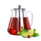 Skleněná konvice z borosilikátového skla s kovový sítkem a pokličkou.