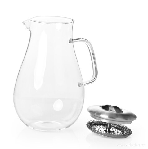1,9 L skleněný džbán z borosilikátového skla s nerezovým víkem a sítem.