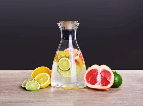 Krásná skleněná karafa je ideální na servírování ovocných či bylinných nápojů, limonád a džusů.