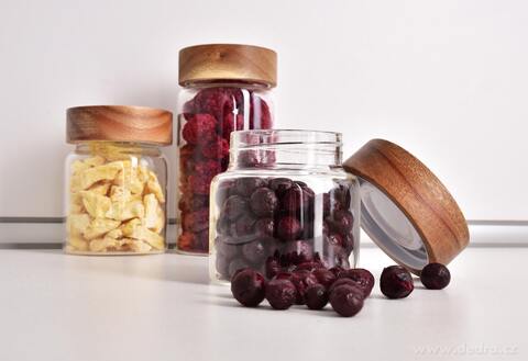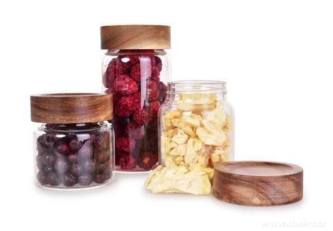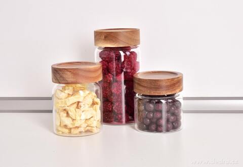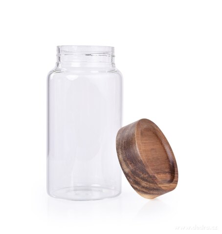 Skleněná dóza BOROSIL (580 ml) spojuje odolné borosilikátové sklo s luxusním šroubovacím víkem z akáciového dřeva, které je opatřeno silikonovým těsněním, aby potraviny zůstaly suché, voňavé a chráněné před prachem. Ideální pro stylové skladování mouky, cukru, kávy, čaje, těstovin, luštěnin, ořechů a koření, ale také jako designový prvek pro sušené aranžmá či drobné dekorace.