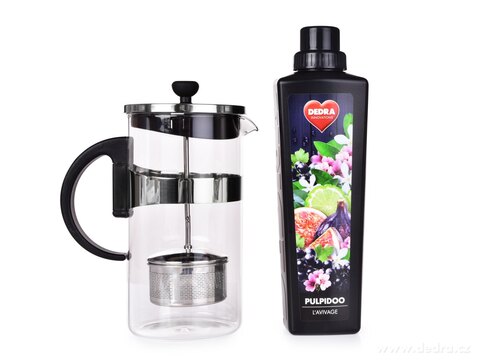 1 L skleněná konvice na kávu a čaj s nerezovým sítkem, kombinace odolného borosilikátového skla, nerezu a plastu. Rozměry: š 16 x h 10 x v 20,5 cm.