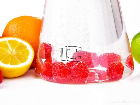 Krásná skleněná karafa je ideální na servírování ovocných či bylinných nápojů, limonád a džusů.