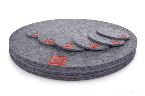 Elegantní sada 12 ks kulatých plstěných prostírání ve dvou velikostech (38 cm a 10 cm). Ochrání stůl před poškrábáním a skvrnami a dodají prostírání styl – vhodné pro každodenní stolování i slavnostní příležitosti.