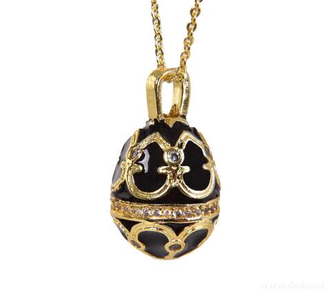 Součástí balení je zlacený náhrdelník ve tvaru černého vejce, zdobený precizními detaily a třpytivými kamínky – šperk, který dokonale doplní vaši osobní auru.