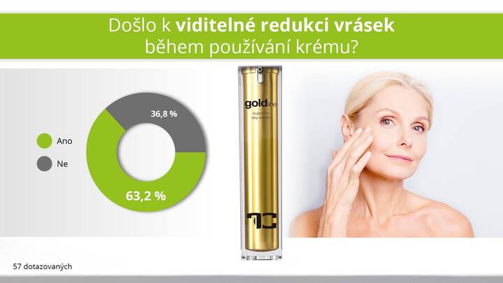 GOLDLINE – luxusní denní krém a sérum s Argirelinem, kyselinou hyaluronovou a Q10. Viditelně redukuje vrásky, hydratuje a regeneruje pleť. Výsledky potvrzené studií: až 94 % uživatelů zaznamenalo účinek do 30 dnů.