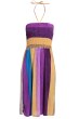Šaty jednoduchého střihu v horní části pružné žabičky, zavazování za krkem. Lze variabilně nosit také jako sukni. Délka cca 80 cm (měřeno od horního výstřihu). Nastavitelná délka vázání za krkem. Materiál: 95 % PES, 5 % Spandex®.