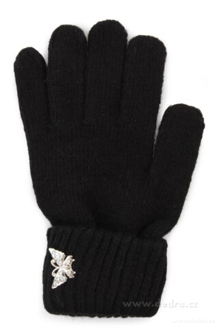 Dámské prstové rukavice zdobené kovovým šperkem ve tvaru motýla,