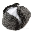 Mnoho variant nošení: přezku můžete zapnout pod bradou nebo na hlavě, ozdobná „ouška“ můžete připnout na horní nebo spodní knoflík. Kombinace hladkého materiálu s umělou kožešinou.