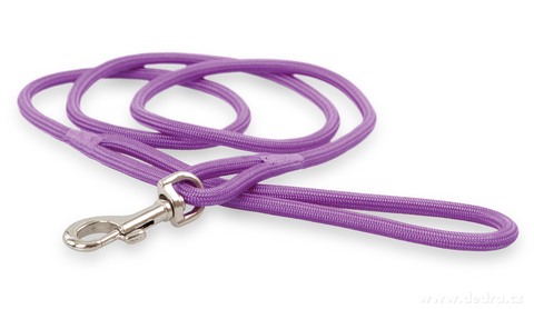 barevné vodítko pro psa, s klasickou smyčkou k uchopení a s karabinou pro připevnění k obojku.