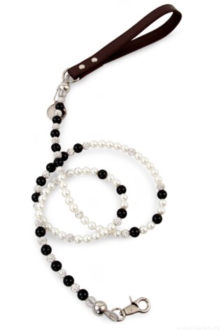 Vodítko je tvořeno z kovového lanka na které jsou navléknuty perly,