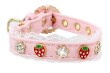 Obojek z hladké růžové ekokůže zdobené kovovými prvky, třpytivými kamínky