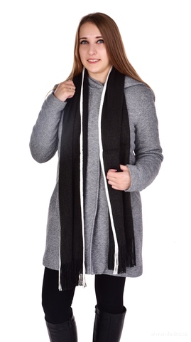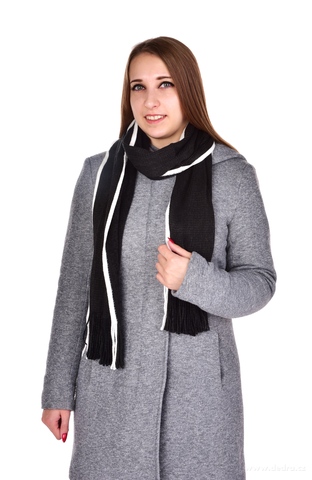 Unisexový pletený šál s bílým okrajem190 x 30 cm, 100% PAN. PRO MUŽE I ŽENY. NADČASOVÝ DESIGN.