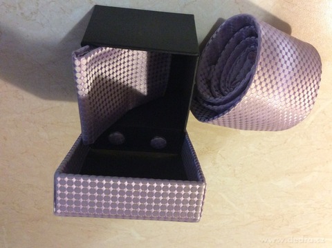 ELROY 5 dílná sada pánské hedvábné kravaty,manžetových knofl íčků a kapesníčku.Materiál: PES hedvábí.Rozměry kravaty: šířka ve spodní části cca 7,5 cm, délka cca 150 cm.Kapesníček 19,5 x 19,5 cm, knofl íčky o průměru cca 1,5 cm. V luxusní dárkové a zároveň úložné krabičce,jejíž víko je potaženo stejným materiálem,z jakého je vyrobena kravata. TOP...
